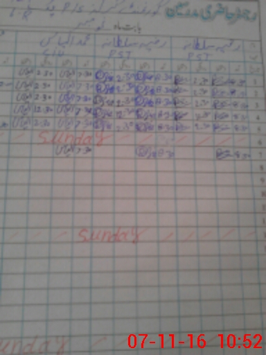 | CNIC | Full Name | Designation | R/C | Absence During Last Calender Month |