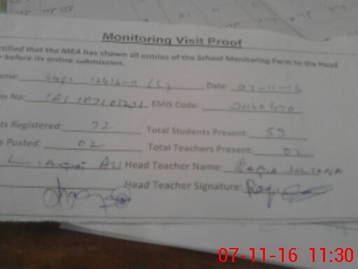 | Attendance Register | Head Teacher | MEA with School | Visit Proof |