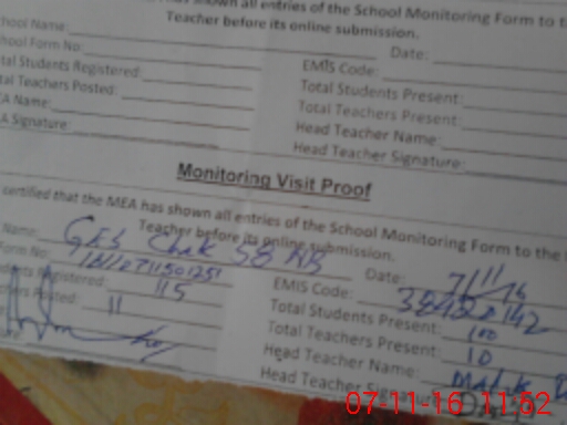 | Attendance Register | Head Teacher | MEA with School | Visit Proof |