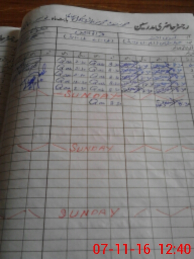 | CNIC | Full Name | Designation | R/C | Absence During Last Calender Month |