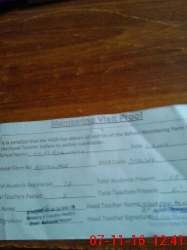 | Attendance Register | Head Teacher | MEA with School | Visit Proof |