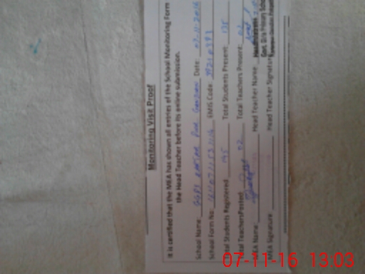 | Attendance Register | Head Teacher | MEA with School | Visit Proof |