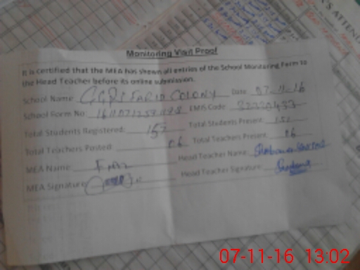 | EMIS Code: 32330433 | Name of School: GGMPS FARID COLONY | |||
