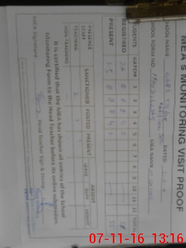 | Attendance Register | Head Teacher | MEA with School | Visit Proof |