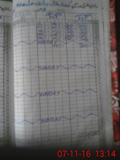 | CNIC | Full Name | Designation | R/C | Absence During Last Calender Month |