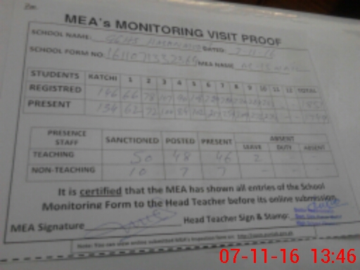 | Certified that this School was Inspected by the Undersigned MEA/DMO Today and the Information Stated Above is as Per Record. | |||||