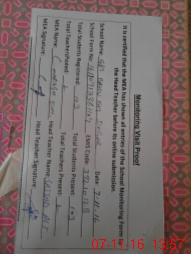 | Certified that this School was Inspected by the Undersigned MEA/DMO Today and the Information Stated Above is as Per Record. | |||||
