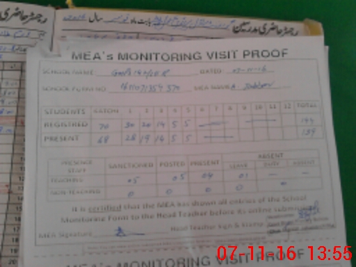 | Attendance Register | Head Teacher | MEA with School | Visit Proof |