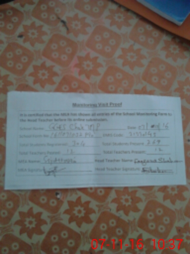 | Attendance Register | Head Teacher | MEA with School | Visit Proof |