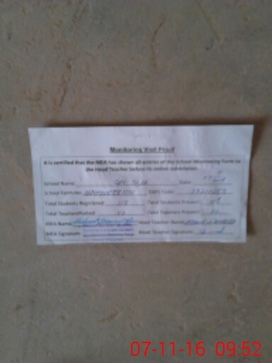 | Attendance Register | Head Teacher | MEA with School | Visit Proof |
