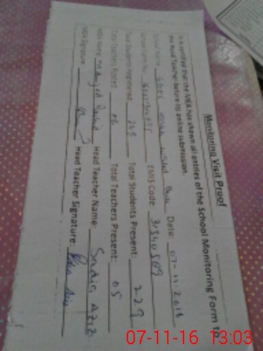 | Name: SA**** AZ**** Designation: (School Headmaster's/Headmistress's) SSE Phone/Cell Number: 03**** |