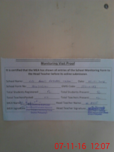 | Certified that this School was Inspected by the Undersigned MEA/DMO Today and the Information Stated Above is as Per Record. | |||||