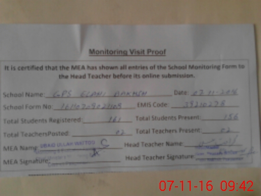 | EMIS Code: 39210278 | Name of School: GPS ELAHI BAKHSH | |||