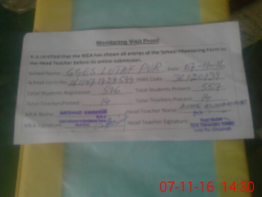 | EMIS Code: 36120139 | Name of School: GES LUTAFPUR BASTI MITHU SHUJABAD | |||