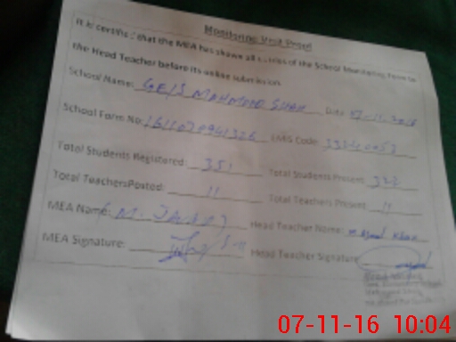 | EMIS Code: 33240053 | Name of School: GES MAHMOOD SHAH | |||