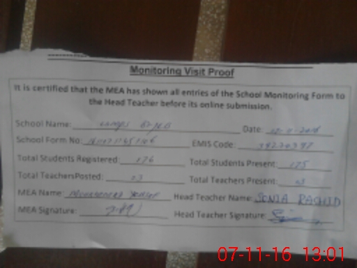 | Certified that this School was Inspected by the Undersigned MEA/DMO Today and the Information Stated Above is as Per Record. | |||||