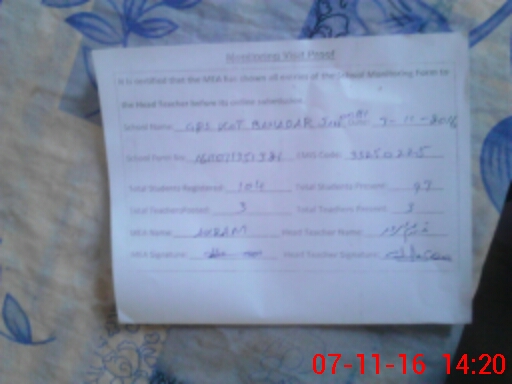 | Certified that this School was Inspected by the Undersigned MEA/DMO Today and the Information Stated Above is as Per Record. | |||||