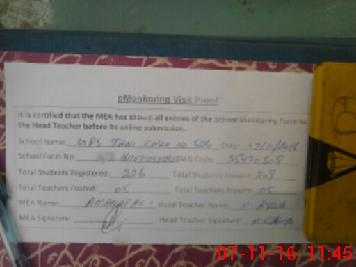 | EMIS Code: 35430509 | Name of School: GPS TANI CHAK 524 | |||
