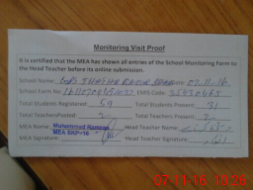 | EMIS Code: 35430465 | Name of School: GPS THATHA QADIR SHAH | |||