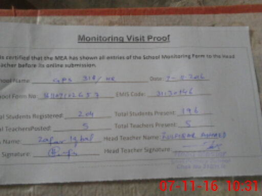 | EMIS Code: 31130146 | Name of School: GPS CHAK 318/HR | |||