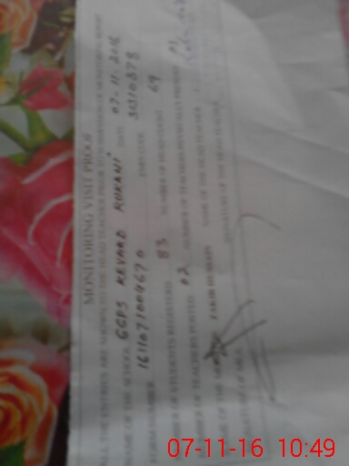 | Monitoring Date: 07-11-2016 | Start Time: 07-11-2016 10:04 AM | End Time: 07-11-2016 10:49 AM | Name of MEA: Za**** Hu**** | |
