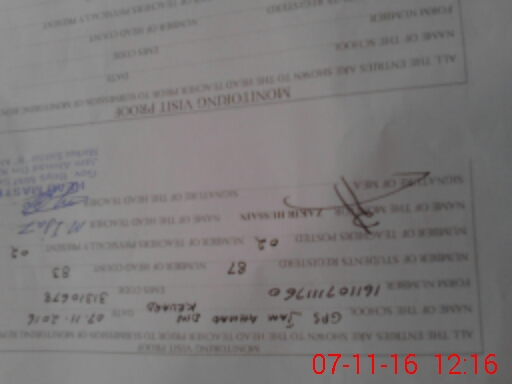 | Attendance Register | Head Teacher | MEA with School | Visit Proof |