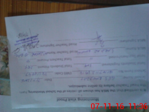 | Monitoring Date: 07-11-2016 | Start Time: 07-11-2016 11:09 AM | End Time: 07-11-2016 11:38 AM | Name of MEA: SA**** KH**** (R**** | |