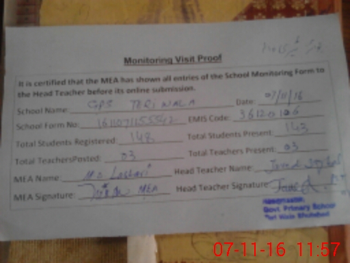 | Attendance Register | Head Teacher | MEA with School | Visit Proof |