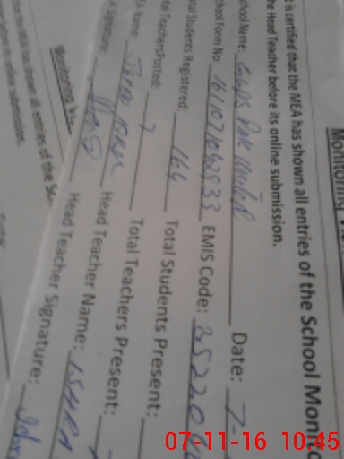 | Attendance Register | Head Teacher | MEA with School | Visit Proof |