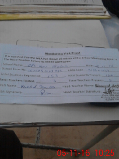 | Attendance Register | Head Teacher | MEA with School | Visit Proof |