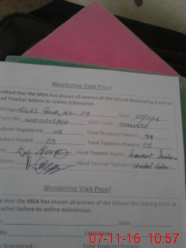 | Attendance Register | Head Teacher | MEA with School | Visit Proof |