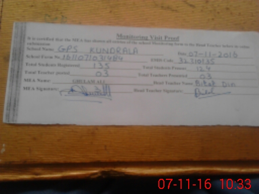 | EMIS Code: 32310135 | Name of School: GPS KUNDRALA | |||