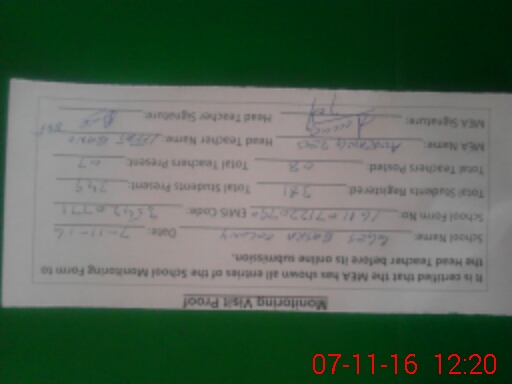 | Name: NO**** Sh**** Designation: (School Headmaster's/Headmistress's) SST Phone/Cell Number: 03**** |