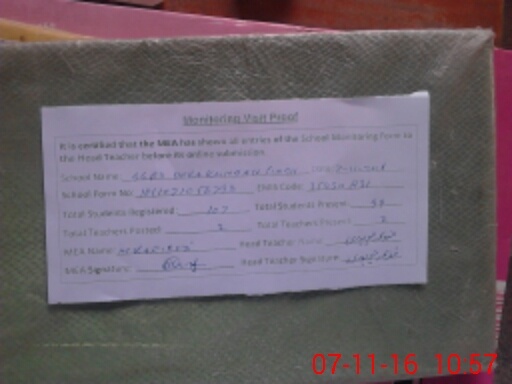 | Certified that this School was Inspected by the Undersigned MEA/DMO Today and the Information Stated Above is as Per Record. | |||||