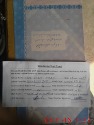 | Attendance Register | Head Teacher | MEA with School | Visit Proof |