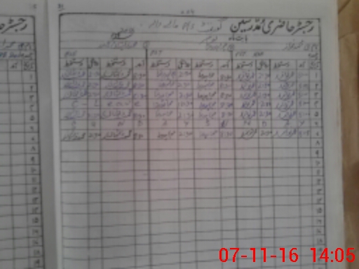 | CNIC | Full Name | Designation | R/C | Absence During Last Calender Month |