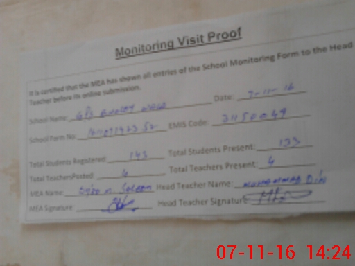 | Attendance Register | Head Teacher | MEA with School | Visit Proof |