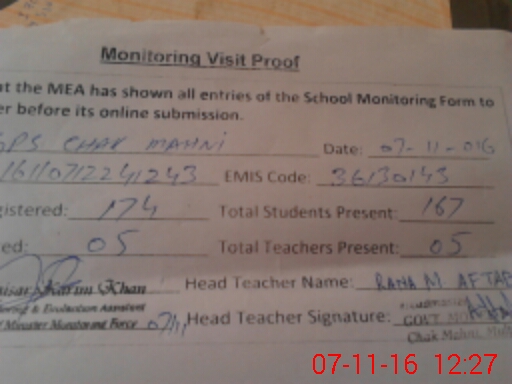 | EMIS Code: 36130143 | Name of School: GPS CHAK MAHNI | |||