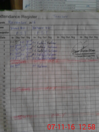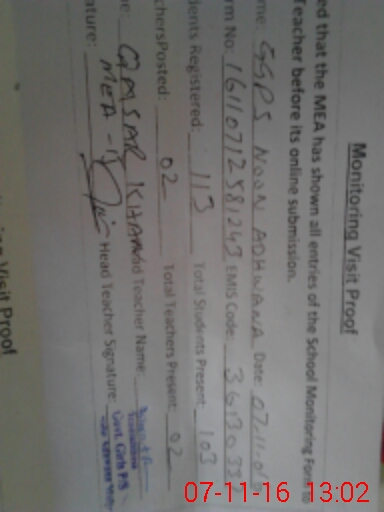 | Attendance Register | Head Teacher | MEA with School | Visit Proof |