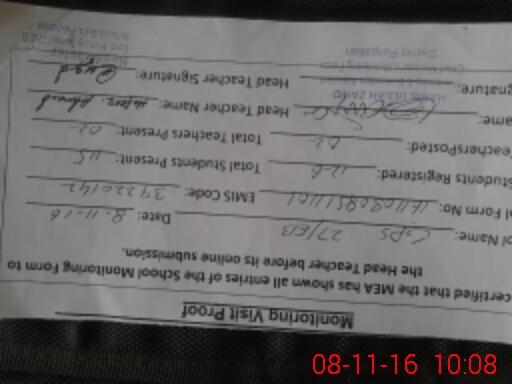 | Attendance Register | Head Teacher | MEA with School | Visit Proof |