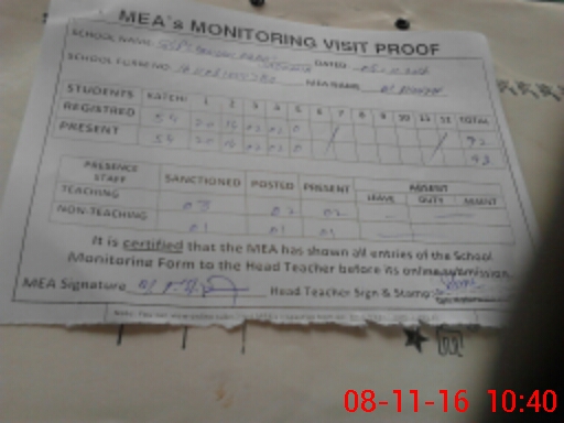 | Attendance Register | Head Teacher | MEA with School | Visit Proof |