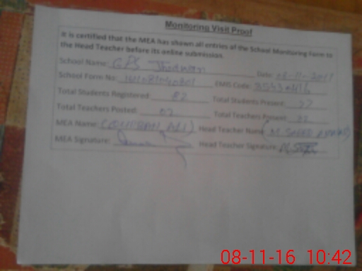 | Certified that this School was Inspected by the Undersigned MEA/DMO Today and the Information Stated Above is as Per Record. | |||||