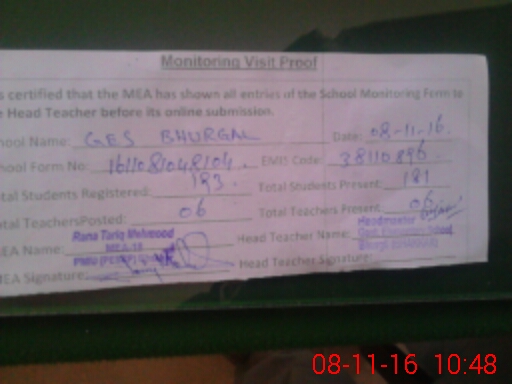 | Certified that this School was Inspected by the Undersigned MEA/DMO Today and the Information Stated Above is as Per Record. | |||||