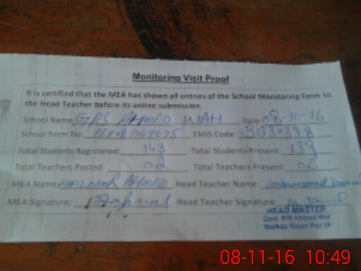 | EMIS Code: 31330398 | Name of School: GPS AHMED WAH | |||