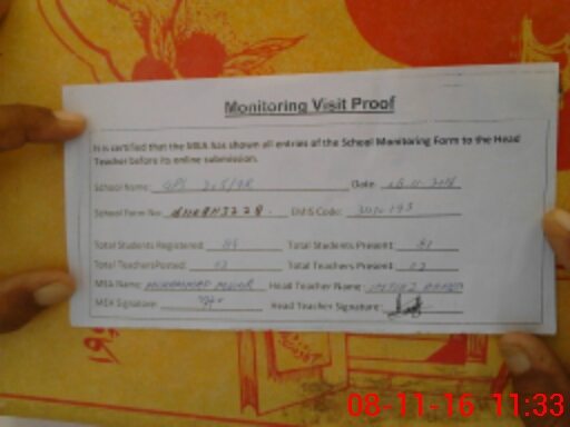 | Attendance Register | Head Teacher | MEA with School | Visit Proof |
