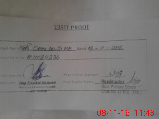 | EMIS Code: 38210262 | Name of School: GPS CHAK NO 51 MB | |||