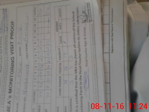 | Monitoring Date: 08-11-2016 | Start Time: 08-11-2016 10:57 AM | End Time: 08-11-2016 11:59 AM | Name of MEA: Z.**** Ba**** Al**** | |