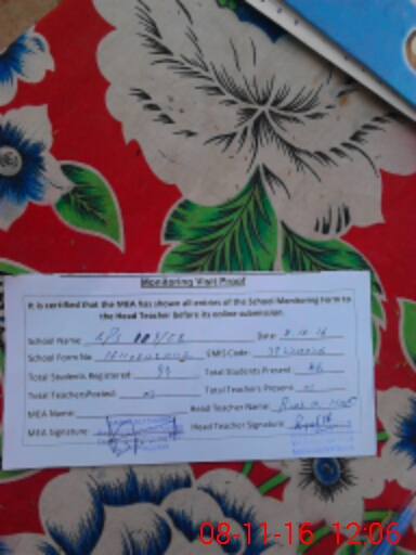 | Attendance Register | Head Teacher | MEA with School | Visit Proof |