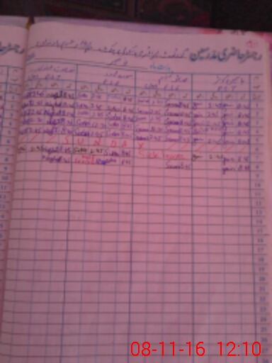 | CNIC | Full Name | Designation | R/C | Absence During Last Calender Month |