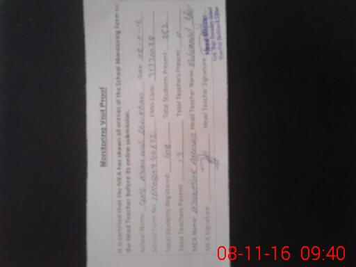 | Attendance Register | Head Teacher | MEA with School | Visit Proof |